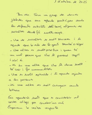 Al maig- juny del 2025 Vam rebre l’encàrrec per part de la FAVB ( Federació d’Associacions de Veïns i Veïnes de Barcelona) de participar al BEC (Barri, Espai de Convivència. Així és com vam plantejar la creació d’una cartografia amb alumnat de 4rt d’ESO de l’itinerari artístic al Institut Dr. Puigvert, que vinculés aquestes persones amb el territori, en 6 setmanes. D’entrada vam proposar detectar aquells possibles punts de trobada de lxs joves. Però oh sorpresa! Vam veure que venien de contrades tan disperses com Gavà o Santa Coloma. Llavors vam posar el focus en el dins i fora de l’institució, aquell espai que sí o sí lxs vincula, realitzant fotografies de manera participativa. Els resultats van ser exposats a la resta de l’alumnat de 4rt del centre.